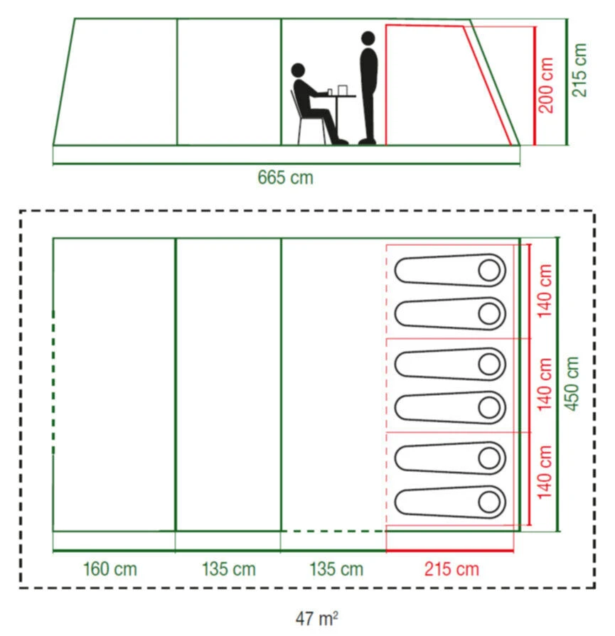 - XXL bedrooms (70cm width) for more living space in sleeping areas.