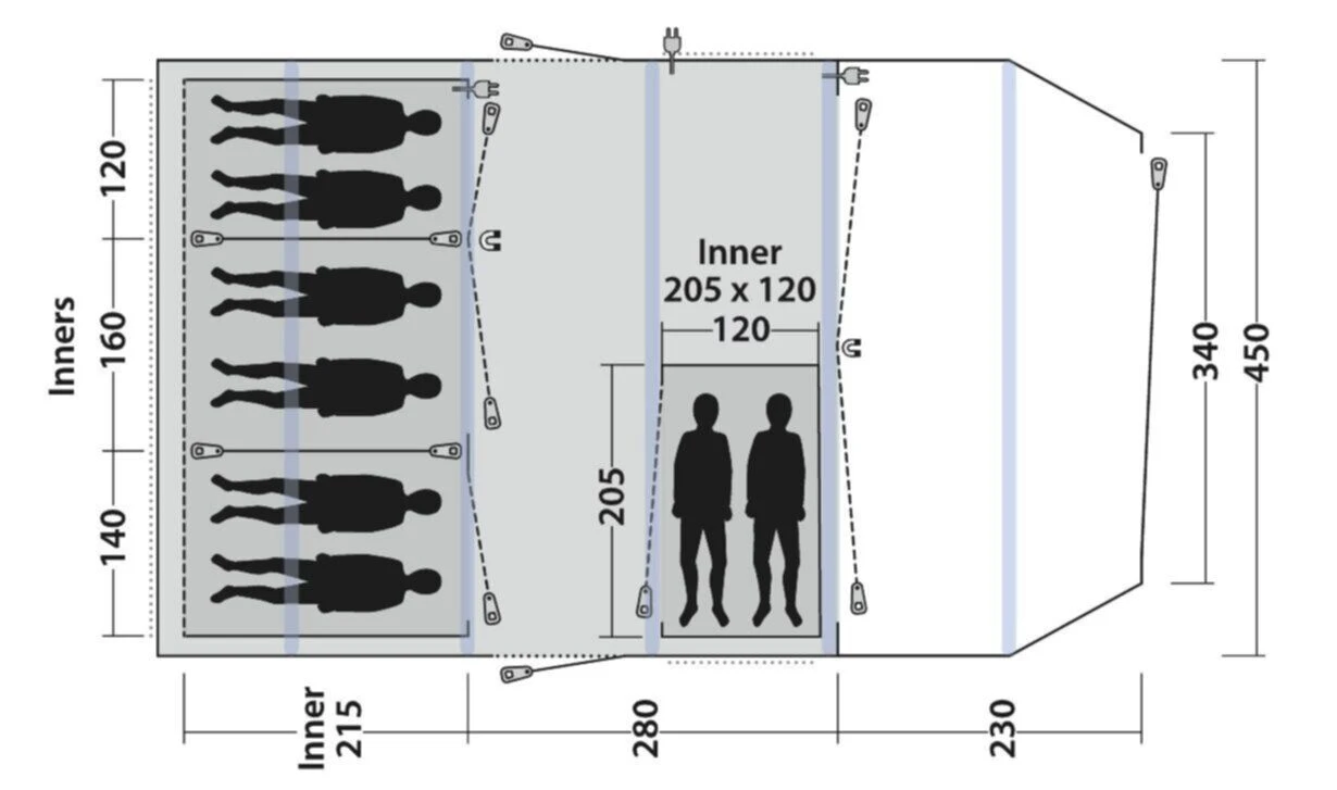 The Outwell Queensdale 8PA is part of the Prime Air collection and offers a great choice for families and friends looking for a fantastic base on longer holidays. It is highly versatile, with a three-zone design, providing a wet room porch area, and large integrated living space, complete with a sleeping inner to the rear. Further to this, there is a secondary inner included for the front living space area, ideal for sealed storage space, or as an optional two-person inner, in the event of guests staying.